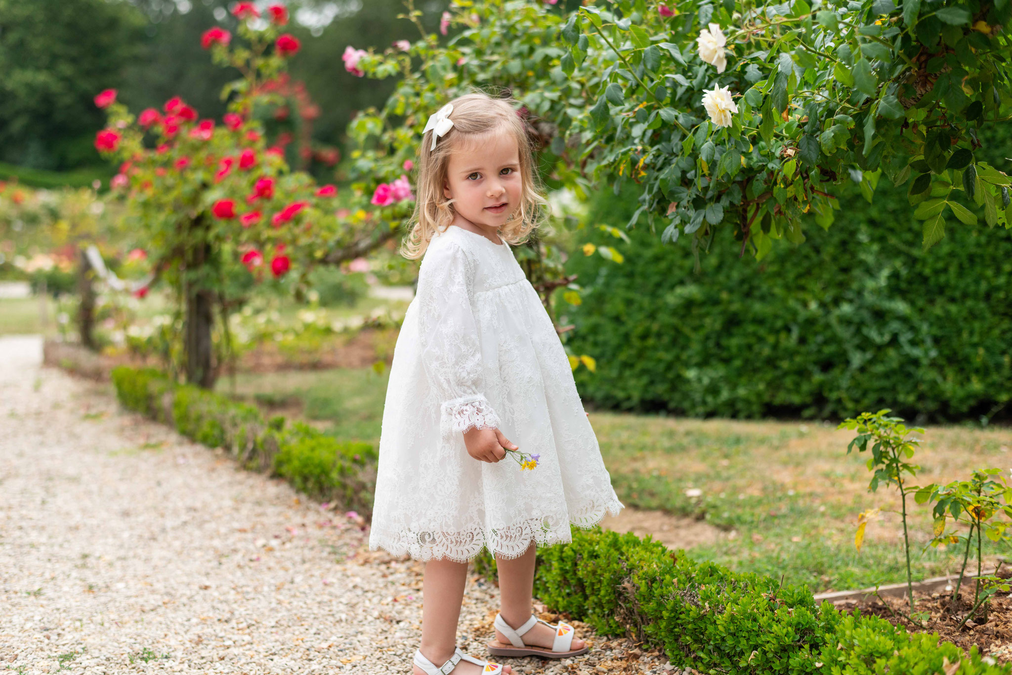 Chaque création allie élégance et raffinement. Découvrez les robes de cérémonie pour enfant et les tenues de baptême pour bébé confectionnées avec des tissus d'exception, en provenance de France et d'Europe. Nous privilégions des matériaux nobles tels que des dentelles françaises de Calais, des tulles brodés et des satins italiens, ainsi que des tissus délicats venant d'Espagne. Ces matières subliment chaque modèle, apportant une touche de raffinement à chaque tenue de cérémonie pour enfant.