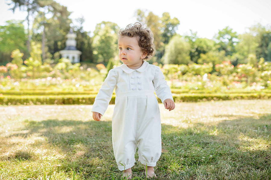 Pour les tenues de baptême pour garçon, nous avons conçu des barboteuses de baptême élégantes, disponibles dans différentes matières selon les saisons : coton pour l'été, velours et polaire pour l'hiver. Nos vêtements de cérémonie pour enfant incluent également des bermudas, des gilets de cérémonie et des pantalons pour les garçons, dans un style à la fois chic et confortable.