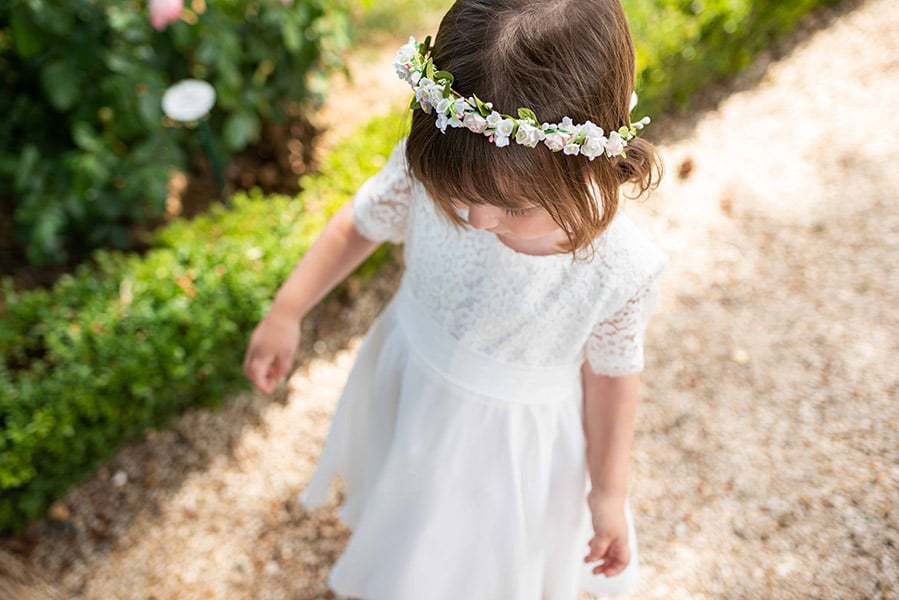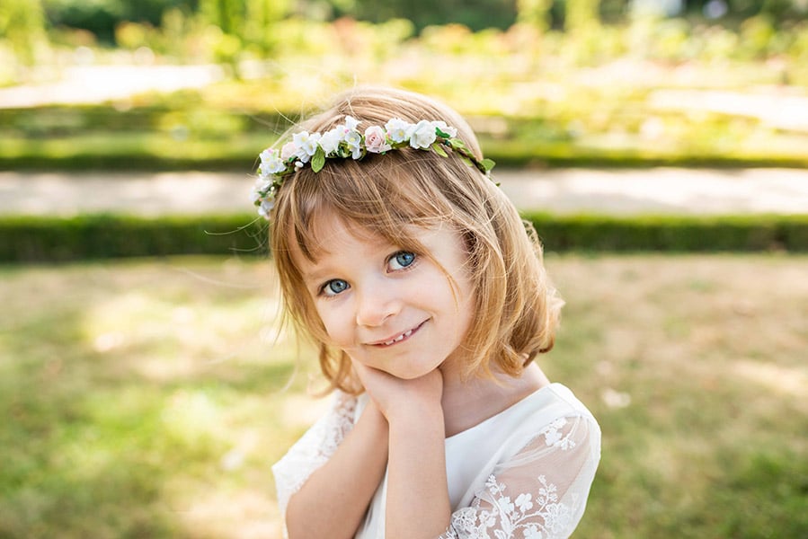 Contrairement aux couronnes en fleurs fraîches, celle-ci ne se fanera pas et restera impeccable tout au long de la journée, sans risque de pétales qui tombent. Légère et confortable, elle est pensée pour les jeunes enfants et peut être portée en toute sérénité.