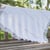 Couverture en maille blanche ajourée, bordée d'un large galon en dentelle de coton.