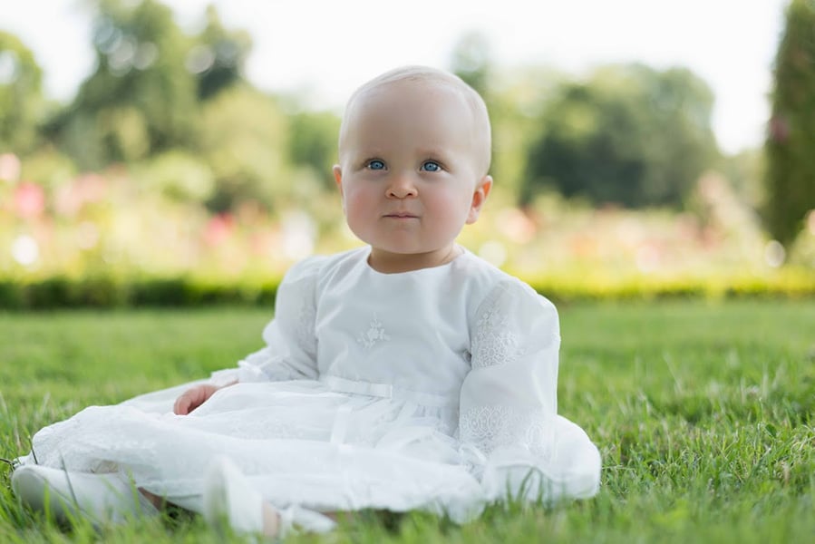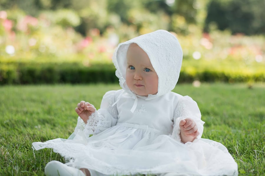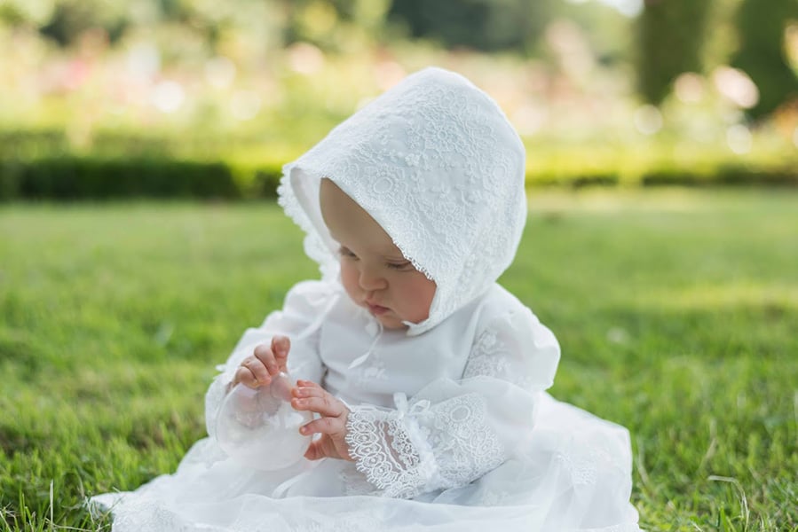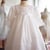 Fabriquée dans un tulle souple brodé de délicats motifs fleuris, cette robe de baptême pour petite fille apportera tout le charme et la délicatesse que l'on attend pour un évènement unique et sacré. Le tulle brodé est de couleur blanc naturel (blanc cassé clair), et non blanc optique, pour un aspect plus doux et authentique.