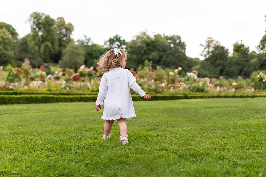 Disponible dans les tailles allant de 3 mois au 3 ans, cette robe saura accompagner les petites filles de tous âges lors de moments précieux.