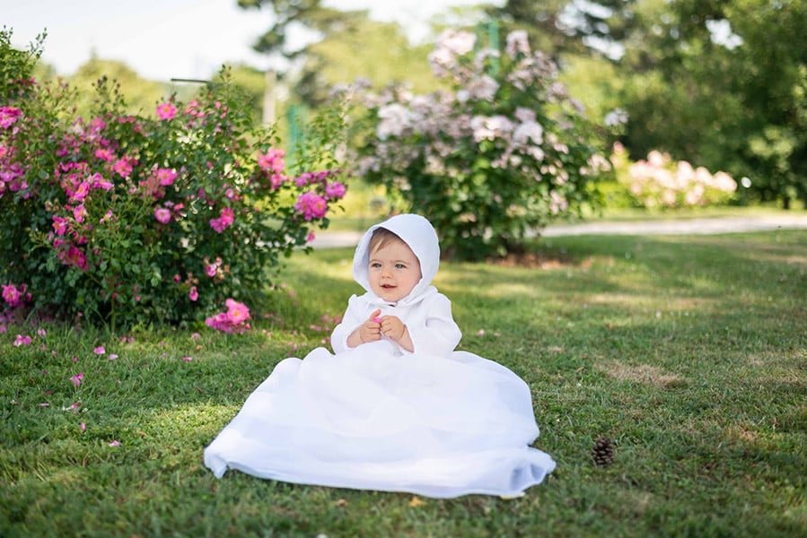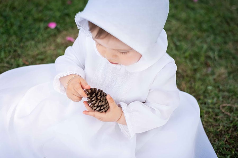 Différents accessoires peuvent compléter la robe de baptême que vous aurez choisie pour votre enfant comme le bonnet assorti en organza de soie et dentelle, des bandeaux pour les cheveux, les chaussons en cuir souple blancs, chaussettes et collants, bavoirs et serviettes de baptême.