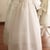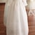 Jolie robe de baptême longue mixte pour bébés filles ou garçons en organza de soie blanc et dentelle de Calais, entièrement doublée coton. Corsage manches longues avec col rond et petits plis en dentelle sur le devant. Jupe en organza de soie agrémentée de deux bandes larges de dentelle française aux motifs pouvant convenir aussi bien pour les filles que les garçons.