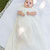 Le corsage de la robe est orné de jolis plis sur le devant, ajoutant une touche raffinée. Les manches courtes ballons, délicatement bordées de fronces, apportent une note romantique à cette tenue de baptême. Le tulle souple brodé, qui compose à la fois les manches et la jupe, est doublé de mousseline pour un effet léger et aérien.