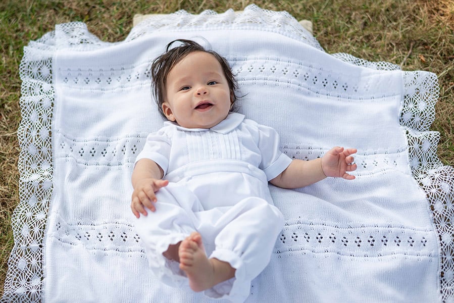 Pour compléter cette tenue de baptême, associez-la avec le bonnet de baptême Augustin (vendu séparément). Chic et pratique, cette barboteuse sera parfaite pour une journée mémorable. Offrez à votre enfant une tenue de baptême alliant confort, style et tradition. Retrouvez-la dans notre sélection de vêtements de cérémonie pour bébés.