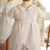 Deux boutons recouverts de tissu au niveau de la taille ajoutent une finition élégante, tandis que la fausse ceinture et le bas des manches sont soulignés d'un passepoil de coton blanc, créant un effet soigné.