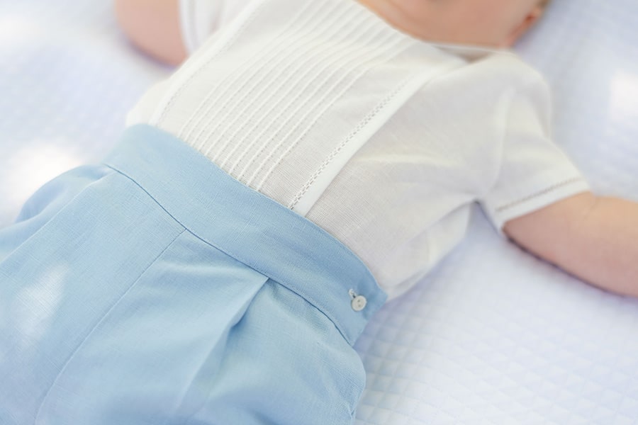 Cet ensemble cérémonie bébé garçon est pensé pour offrir une grande liberté de mouvement tout en restant chic et intemporel. Il convient parfaitement aux bébés pour des cérémonies d'été, baptême ou mariage, sous une forte chaleur.