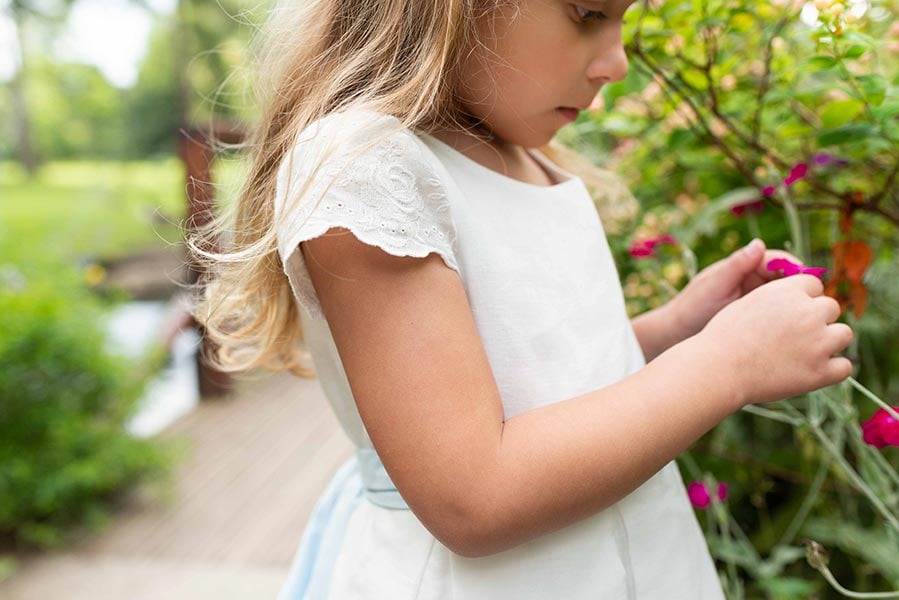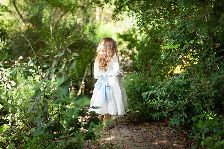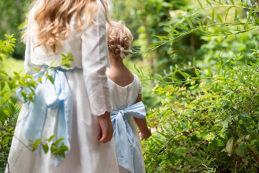 Robe de cérémonie pour petites filles, 50% coton - 50% lin de couleur blanc cassé clair.