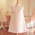 Robe cérémonie enfant trapèze en coton ivoire. Taille haute bordée d'un ruban en satin de coton rose avec noeud plat sur le devant. Une jolie robe à porter pour une fête, une cérémonie, un mariage ou un baptême.