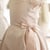 La jupe, agrémentée de plis gracieux, est complétée par un joli nœud en taffetas rose poudré placé sur le côté.