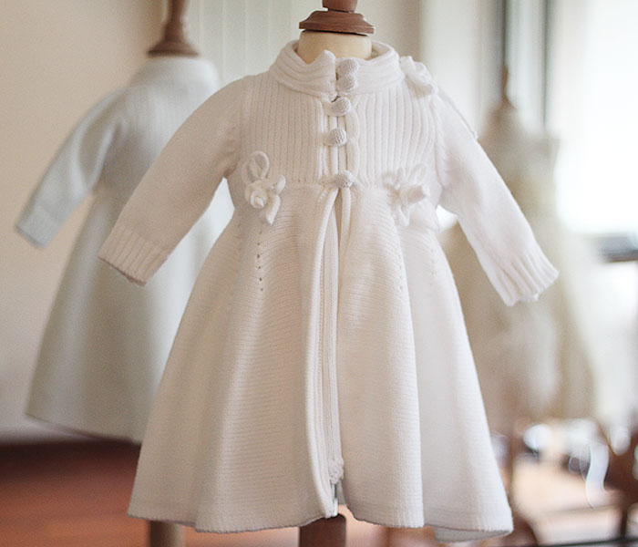 Découvrez ce joli manteau de baptême allant avec la robe Pauline en maille blanche.