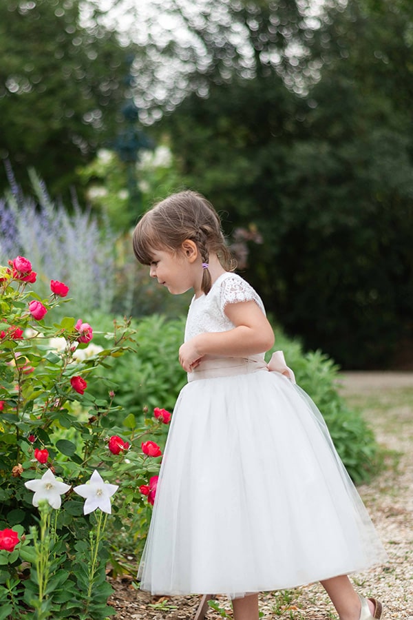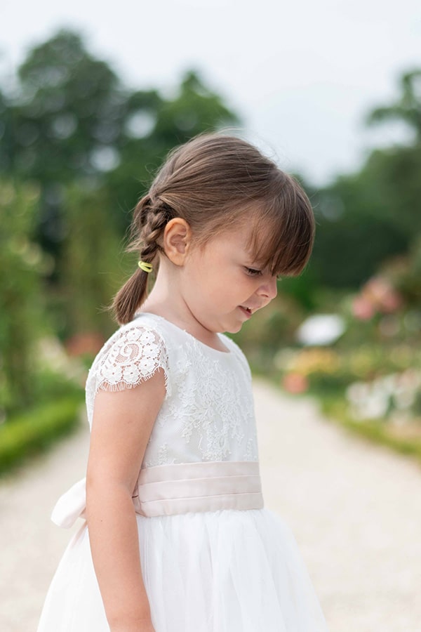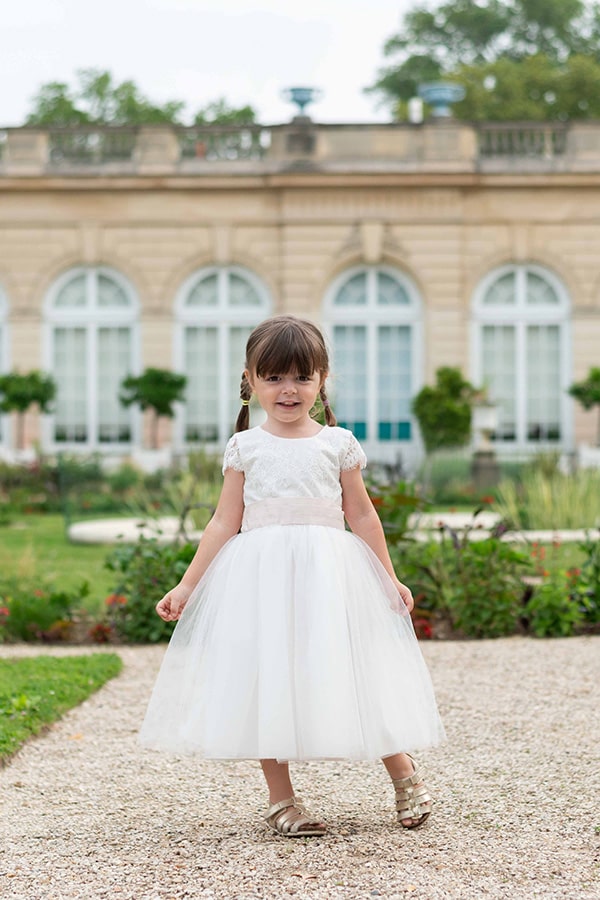Une robe de cérémonie enfant idéale pour les occasions spéciales, que ce soit pour un mariage en tant que demoiselle d'honneur ou pour une cérémonie de baptême.