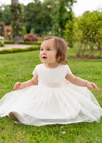 Cette robe a été créée avec soin à partir de tissus de haute qualité, notamment du tulle et de la dentelle italienne, doublée de coton pour assurer confort et élégance à votre enfant.